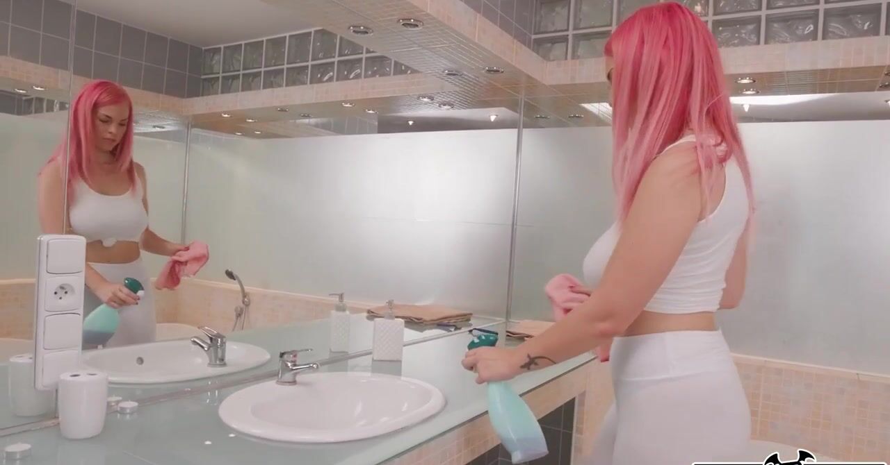 Сочная домработница с розовыми волосами отдается негру в жопу