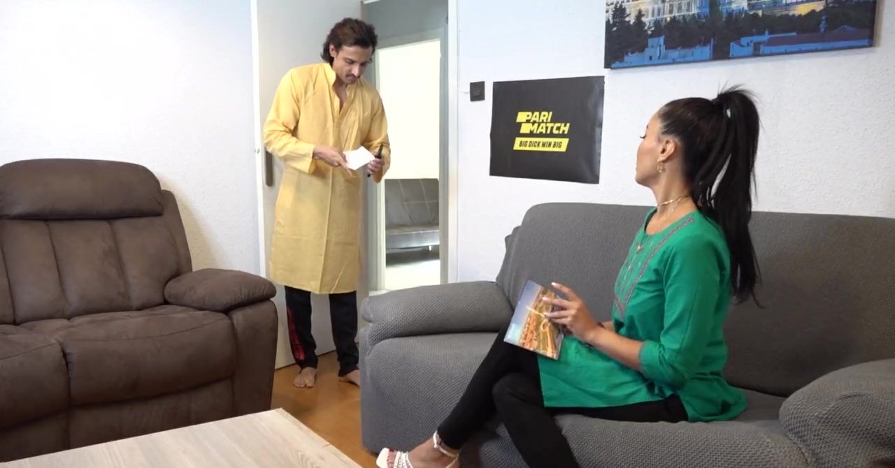 «Заботливый хозяин сделал привлекательной горничной массаж ног, когда та подвернула ногу. В итоге зрелая красотка разрешает не только ноги поласкать, но ещё и киску, которая у неё оказывается очень влажной. Индийская бестия возбуждается и берет в ротик большой член парня. Она оказалась развратной любовницей, которая сделала прекрансый минет и потом отдалась в мокрую щелку на диване, издавая громкие стоны.»