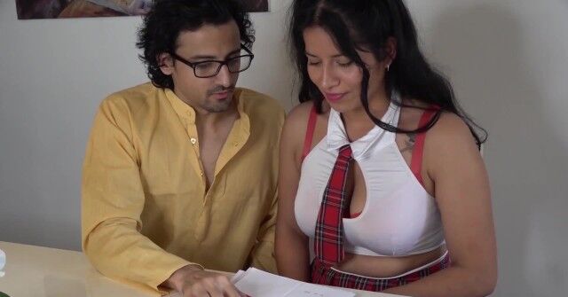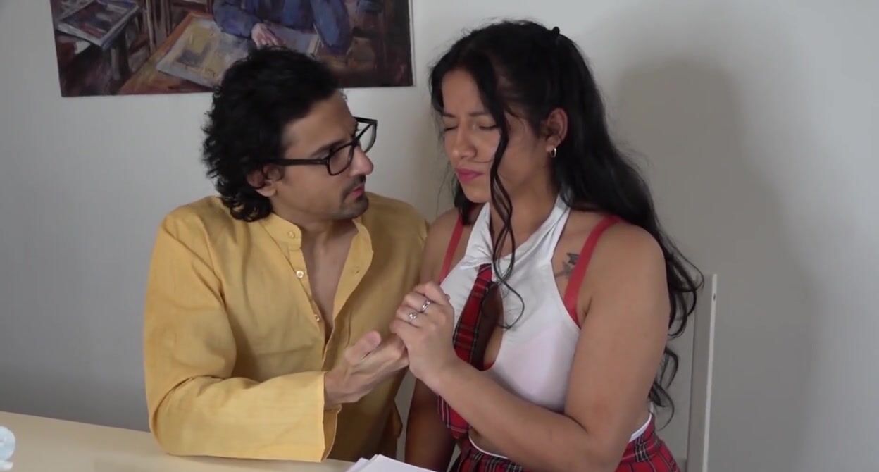 «Учитель подозревает, что милая студентка не спроста так сексуально оделась. Эта привлекательная девушка с загорелым телом надела довольно короткую юбку, так что преподаватель мог увидеть её трусики и сочную попку. Уже вскоре жаркая ученица призналась - она хочет заняться с учителем сексом. Девчонка обрадовалась, когда оказалось, что член преподавателя такой большой. Она с кайфом взялась делать ему смачный минет.»